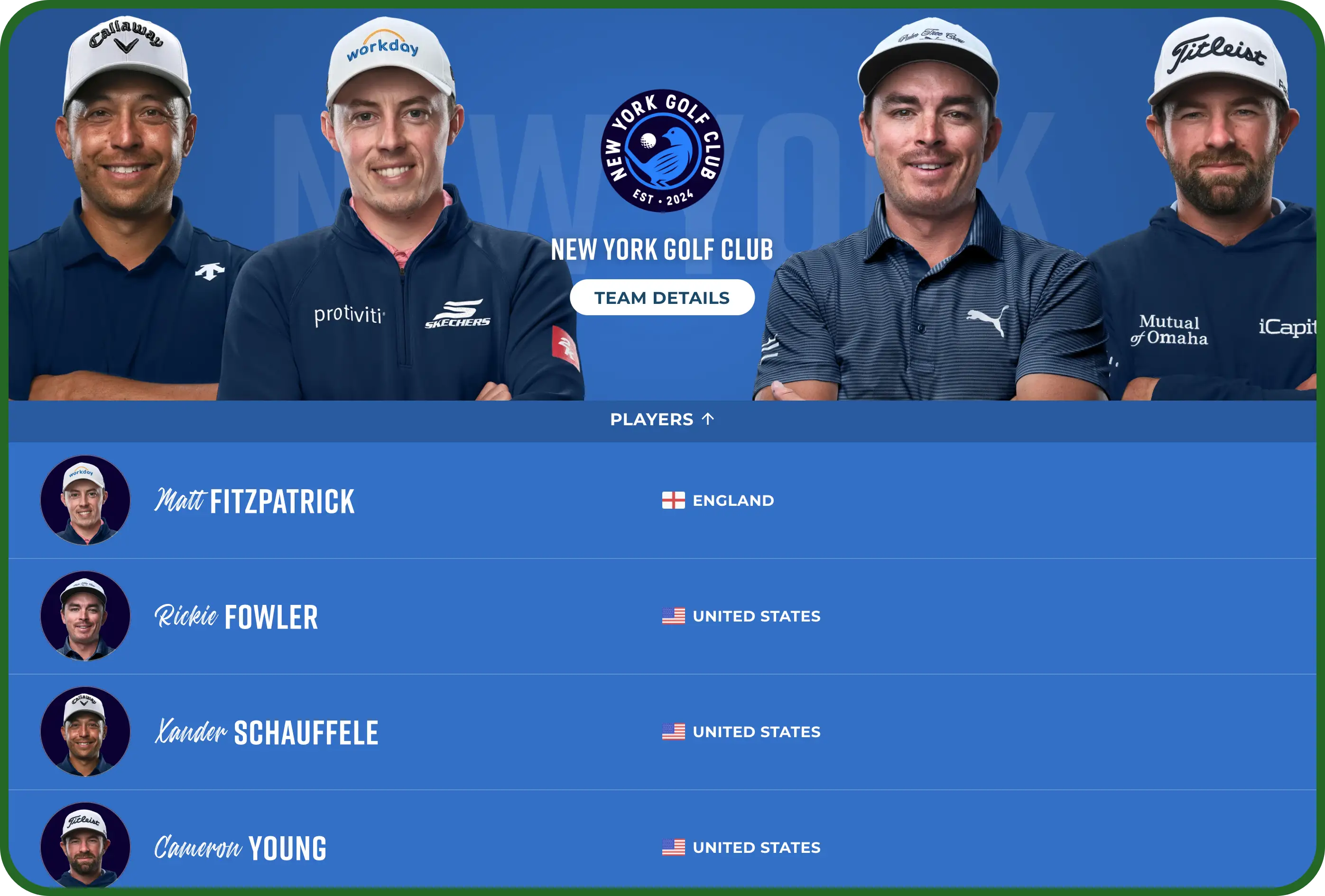 - 첫 경기: 2025년 1월 8일, 뉴욕 골프 클럽 대 더 베이 골프 클럽