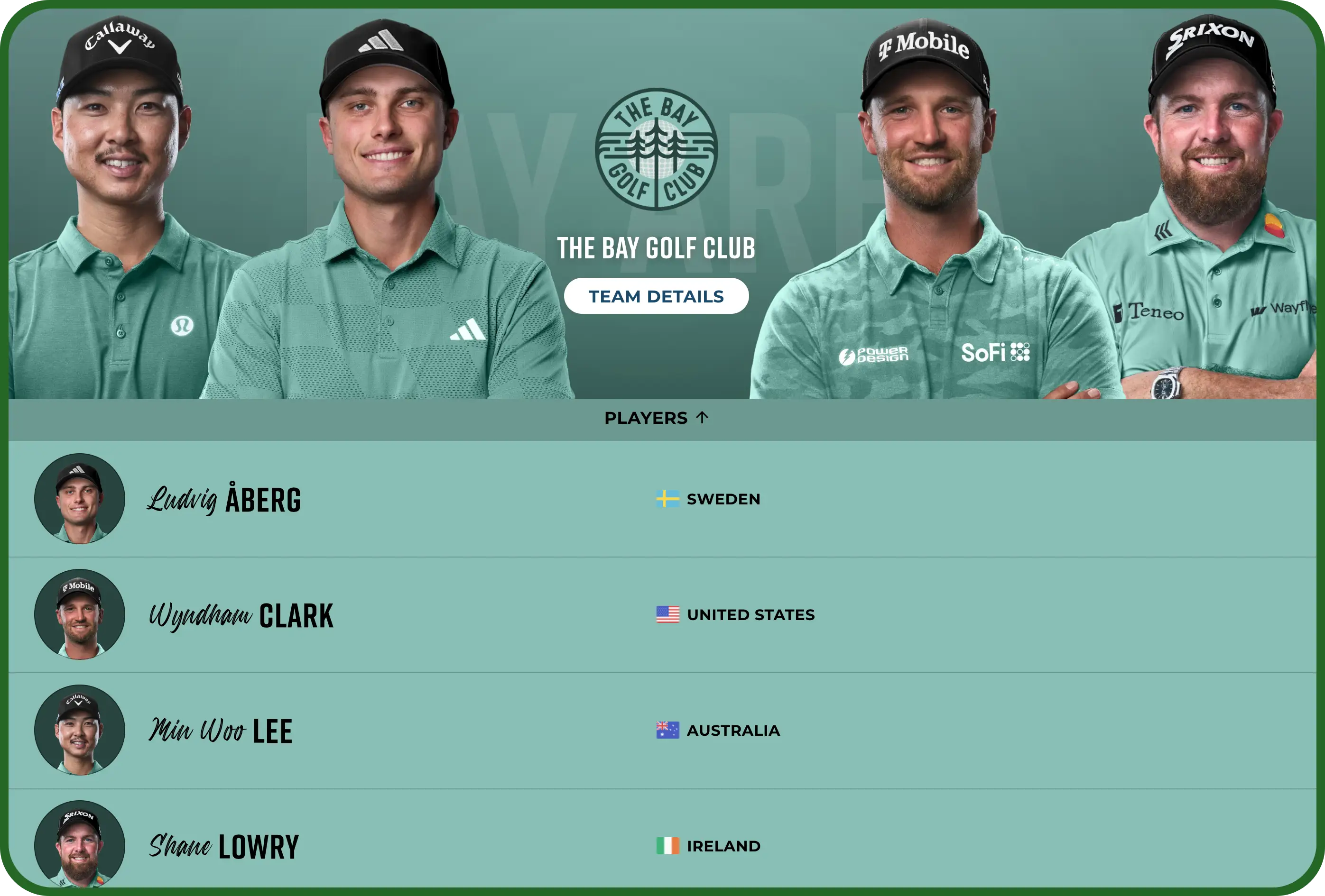 2. 팀 기반 경쟁: 6개의 팀이 출전하며, 각 팀은 세계적인 골프 스타들로 구성됩니다.